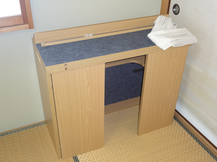 両袖板をまっすぐになるように開き、天板をその上にかぶせるように蓋を閉めます 。