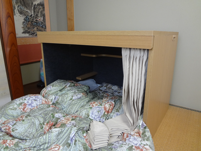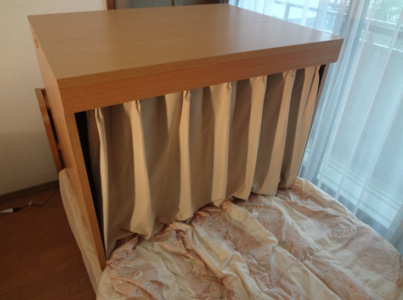 付属のカーテンを吊るし、敷布団を中に敷きこんで完成です 。